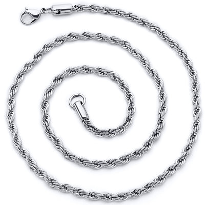 36 Inch 4mm Diamond Cut Stainless Steel Rope Chain Necklace