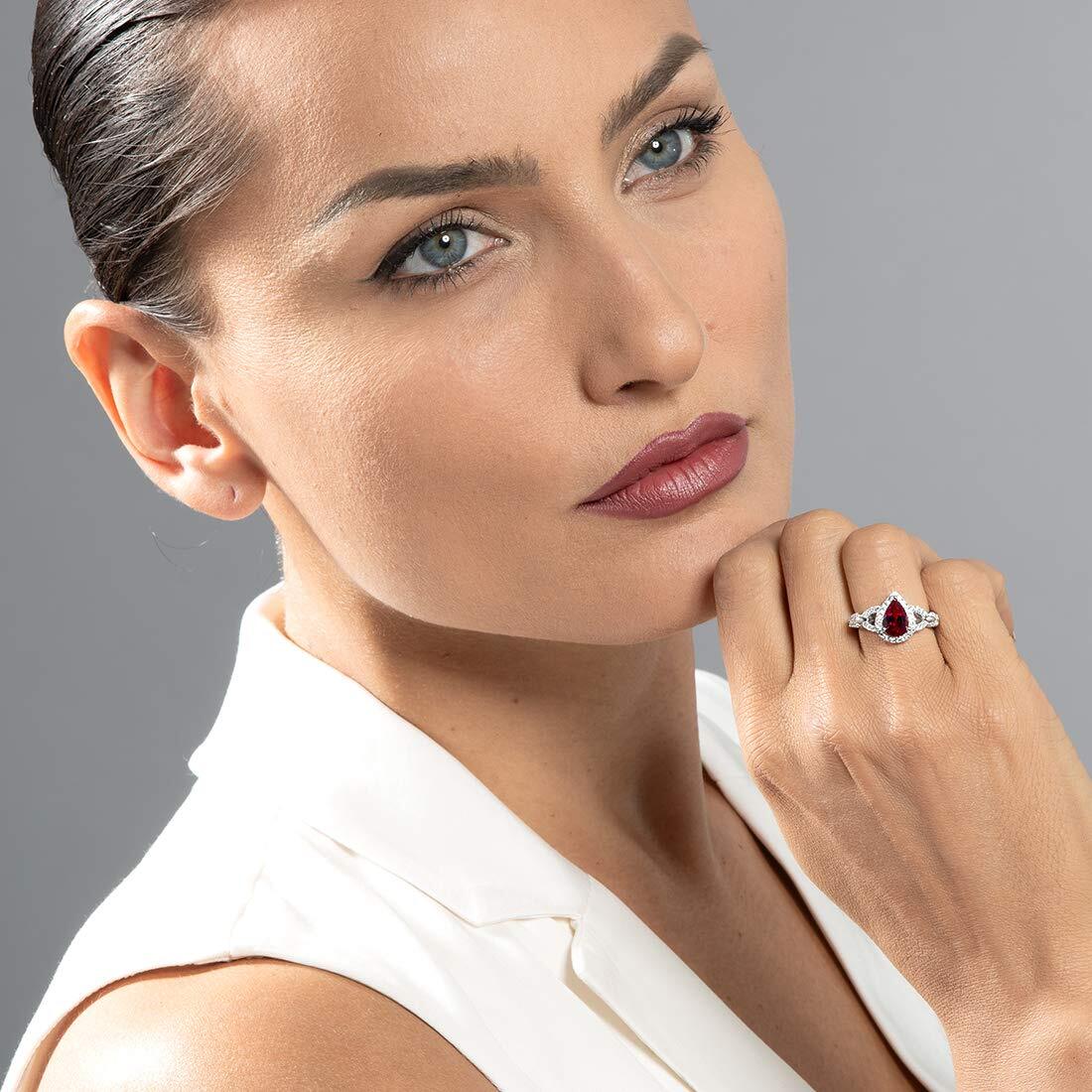 Ruby Pear Shape Cut Ring in 925 Sterling Silver - SJC