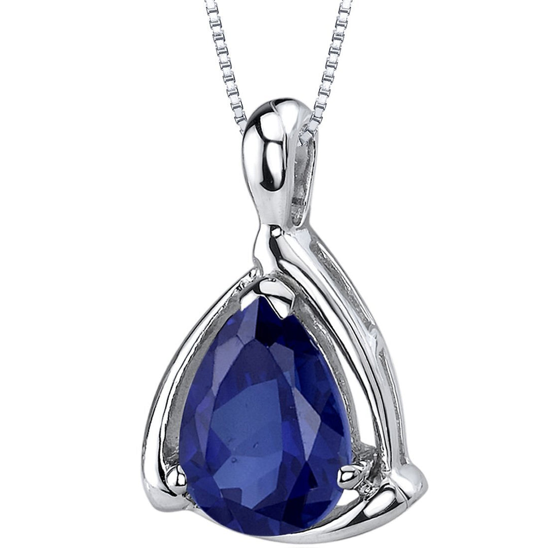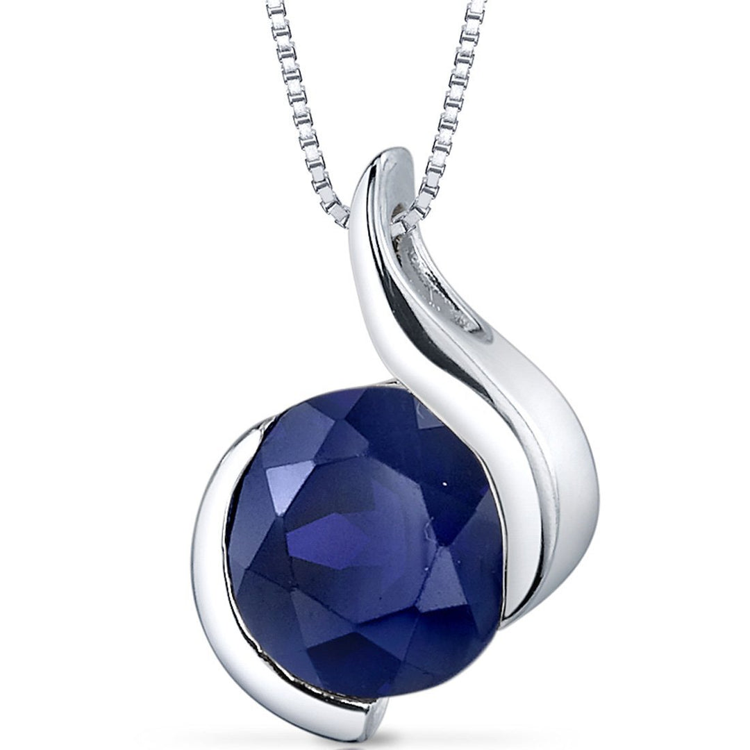 SJC Blue Sapphire 925 Sterling Silver Pendant Necklace
