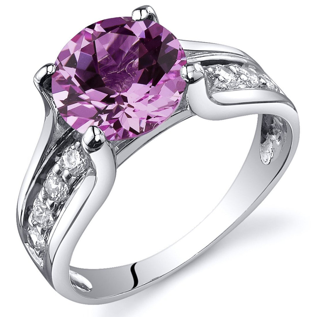 Pink Sapphire Round Cut Ring in 925 Sterling Silver - SJC