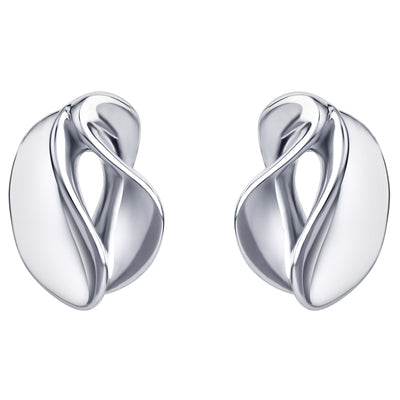 Sterling Silver Waves Small Huggie Hoop Earrings