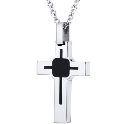 Multi-Layered Two Tone Stainless Steel Cross Pendant With 22 inch Chain