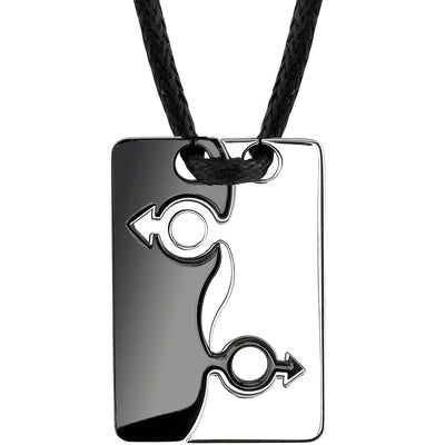 Stainless Steel Mars Symbol Puzzle Pendant on a Black Cord