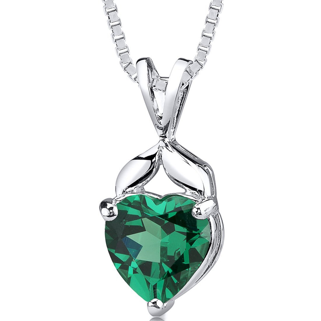 SJC Simulated Emerald 925 Sterling Silver Pendant Necklace