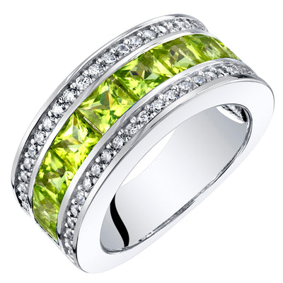 Main StoneGenuine Peridot1.50 caratsPrincess Cut3.5x3.5mmLeaf Green HueEye CleanAccent Stone(s)Cubic ZirconiaRound Brilliant CutPremium GradeMetalSterling Silver925 stamp7.50 gramsRing features exceptional Design, Craftsmanship and Finish. Peridot is the Birthstone of August. Perfect gift for Mothers Day, Birthdays, Valentines Day, Graduation, Christmas or just about any other occasion. Style SR11940