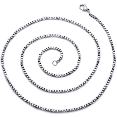 This simple, yet sleek Diamond Cut Box Chain is constructed from high-quality, highly polished Stainless Steel that has that Rich Platinum Look without the Platinum price. The classic box style makes for a classy comfortable flexible fit. Every ensemble will get a dash of fresh elegance when you wear this classy must-have.