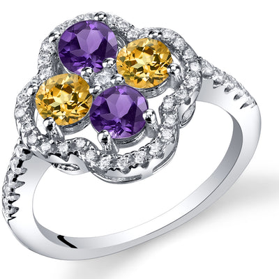 Ring features exceptional Design, Craftsmanship and Finish. Amethyst is the Birthstone of February. Citrine is the Birthstone of November. Perfect gift for Mothers Day, Birthdays, Valentines Day, Graduation, Christmas or just about any other occasion.