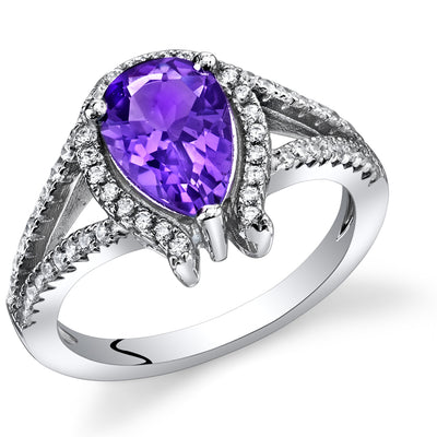 Amethyst Pear Shape Sterling Silver Ring Size 6