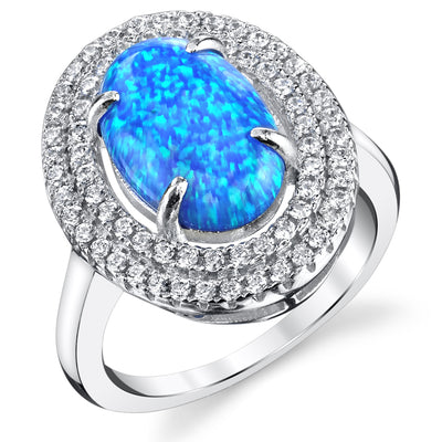 Created Opal Oval Cut Sterling Silver Ring Size 6