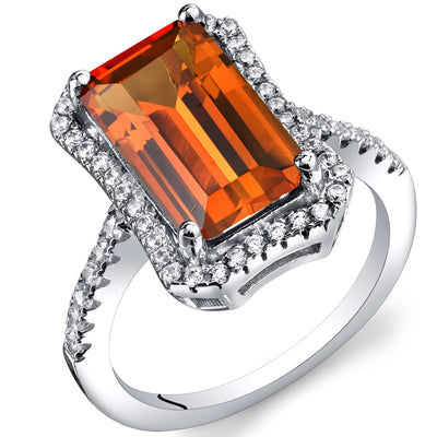 Created Padparadscha Emerald Cut Sterling Silver Ring Size 9