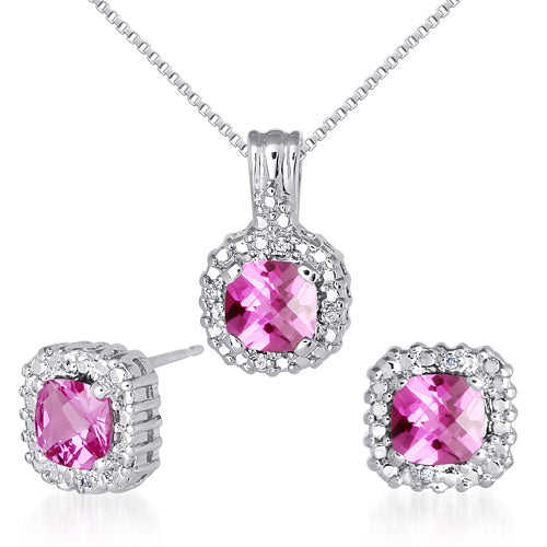 Pink Sapphire Pendant Earrings Set Sterling Silver 4.50 Carats