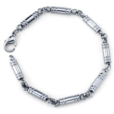 This sleek and sturdy bracelet is crafted from gleaming, Stainless Steel while the smooth finish accentuates the ingenious etched detailing. The easy-to-wear Lobster Claw clasp completes the look with a secure and comfortable fit. The bracelet measures 8 1/4 inches in length and is approximately 4 millimeters in diameter.