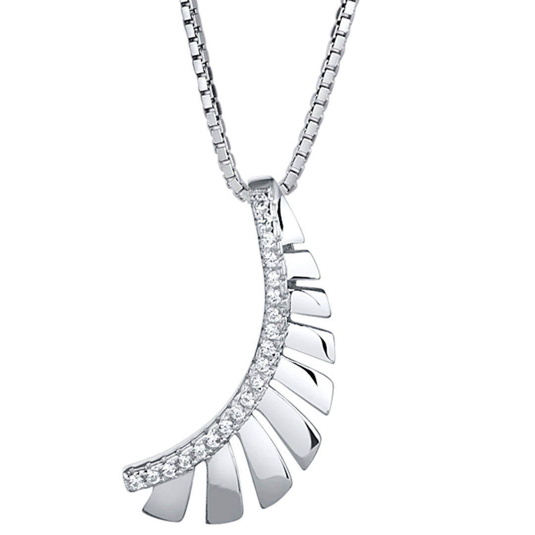 Sterling Silver Cubic Zirconia Feather Design Pendant