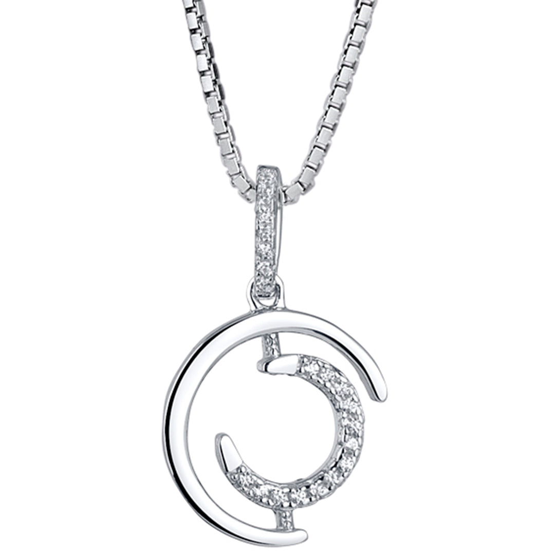 This very special pendant necklace catches the light as you make your entrance. Reminiscent of the moon, it glows from crescent-like arcs, one in a smooth Sterling Silver and the other embellished with sparkly accents. Secure the lovely box-style chain around your neck and you're ready for your next date night.
